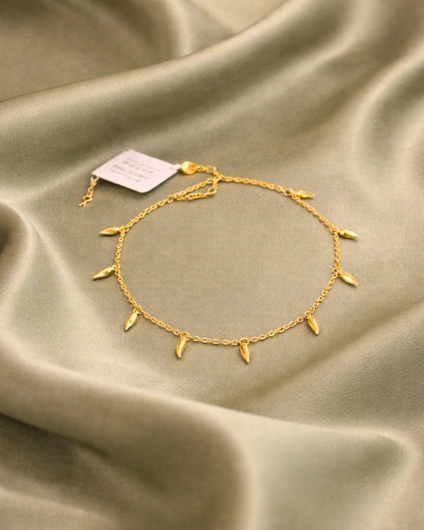 Gold-Toned Anklet with Leaf-Shaped Charms